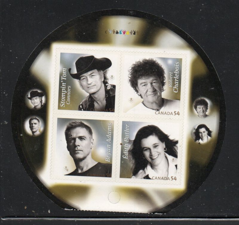 Canada Scott 2234 & Unitrade Catalogue number 2234i 2009 Canadian Recording Artists stamp booklet pane with Stompin' Tom Conners upper left.