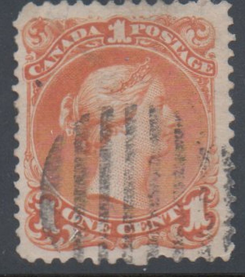 Canada Scott & Unitrade Catalogue number 231868 1 cent yelloe orange large Queen Victoria stamp .