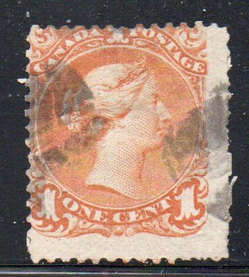 Canada Scott & Unitrade Catalogue number 23 1869 1 cent yellow orange Large Queen Victoria stamp .Used, very good .Canadian Customers - No added GST/HST .US customers - There is no tariff on postage stamps that I send to you.26-1-41.jpg