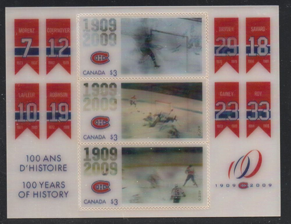 Canada Scott & Unitrade Catalogue number 2340 2009  100th Anniversary Montreal Canadiens stamp souvenir sheet .Mint, fine to very fine original gum never hinged .Canadian Customers - I pay the GST/HST for youMember Canadian Stamp Dealers Association