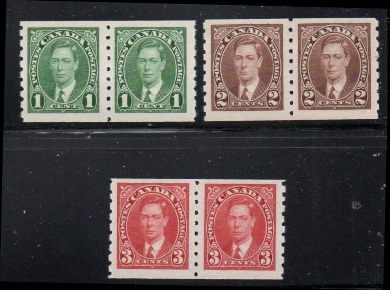 Canada Scott & Unitrade Catalogue number 238-240 1937 George VI coils stamp pairs set .Mint, very fine, original gum never hinged .Canadian Customers - I pay the GST/HST on your purchases from me25-10-2.jpg