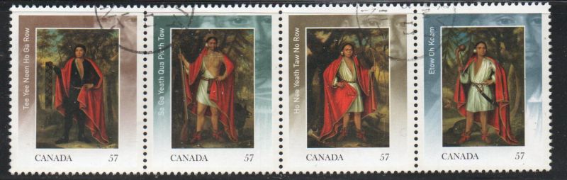 Canada Scott & Unitrade Catalogue number 2383a 2010 Indian Kings stamp strip of 4 .Used, fine to very fine .Member Canadian Stamp Dealers AssociationCanadian Customers - No added GST/HST .US customers - There is no tariff on postage stamps that I send to you.