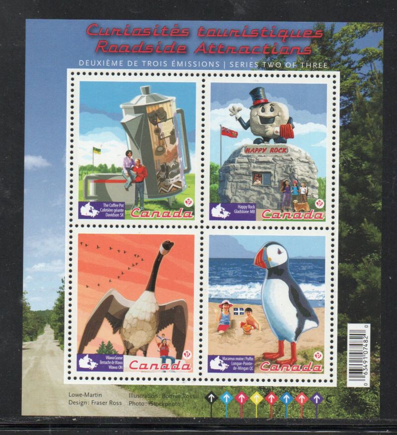 Canada Scott & Unitrade Catalogue number 2397 2010 Roadside Attractions stamp souvenir sheet ..Mint, fine to very fine original gum never hinged .Canadian Customers - I pay the GST/HST for youMember Canadian Stamp Dealers Association