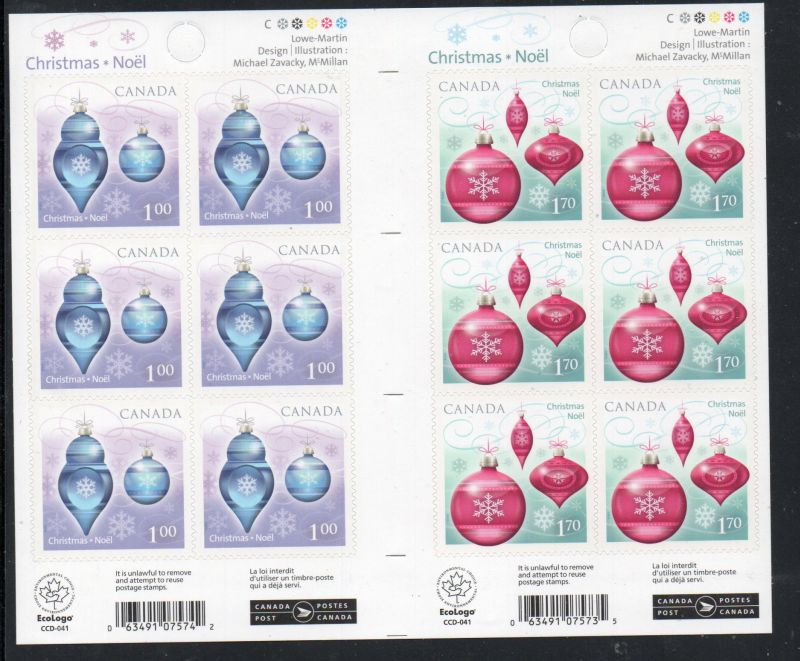 Canada Scott & Unitrade Catalogue number 2415b, 2010 2414a $1.00 & 2415a $1.70 adhesive stamp booklet panes of 6 with gutter between..Mint, fine to very fine, original gum never hinged .Member Canadian Stamp Dealers AssociationCanadian Customers - No added GST/HST .US customers - There is no tariff on postage stamps that I send to you.