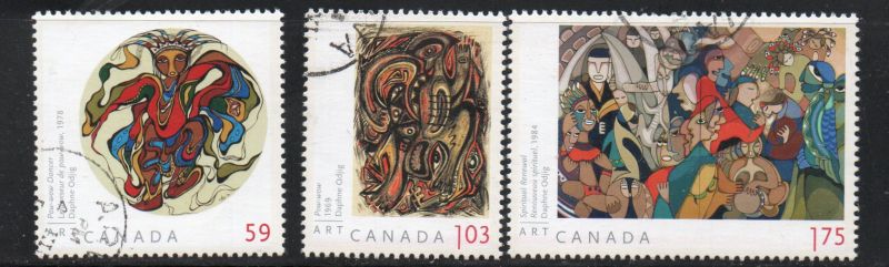 Canada Scott & Unitrade Catalogue number 2423, 2438-2439 Daphne Odjig Paintings stamp set.