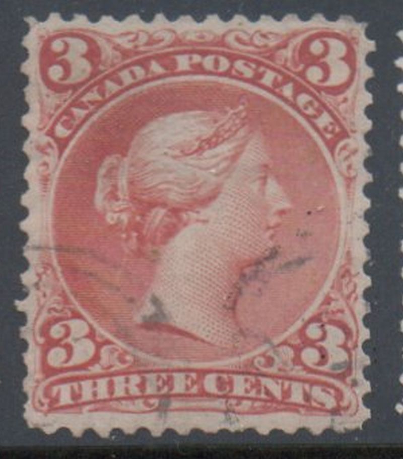 Canada Scott & Unitrade Catalogue number 25 1868 3 cent red large Queen Victoria stamp .