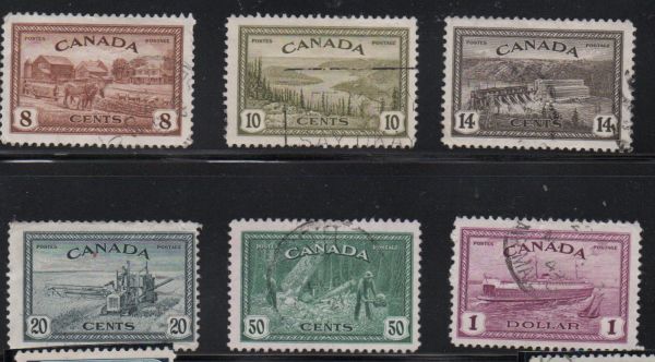 Canada Scott & Unitrade Catalogue number 268-273 1946 Peace stamp set.Used, fine to very fine.Canadian Customers - No added GST/HST US customers- There is no tariff on stamps that I send to you19-2-2.jpg