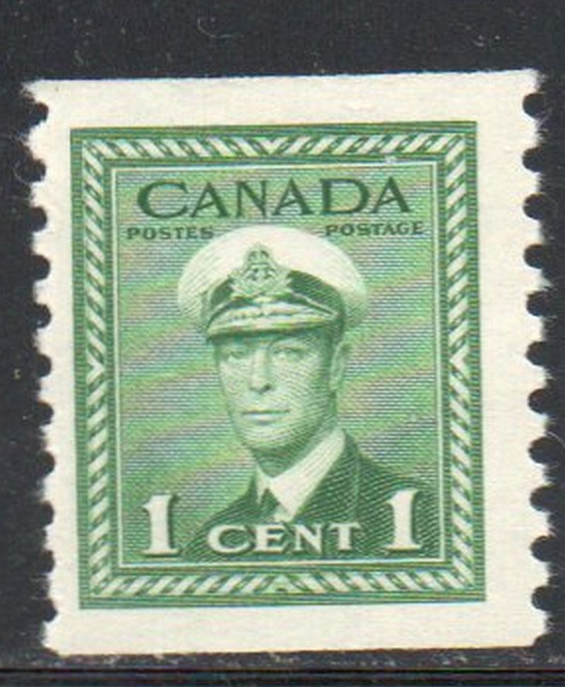 Canada Scott & Unitrade Specialized Catalogue number 278 1948 1 cent green George VI coil stamp perforated 9 1/2 .