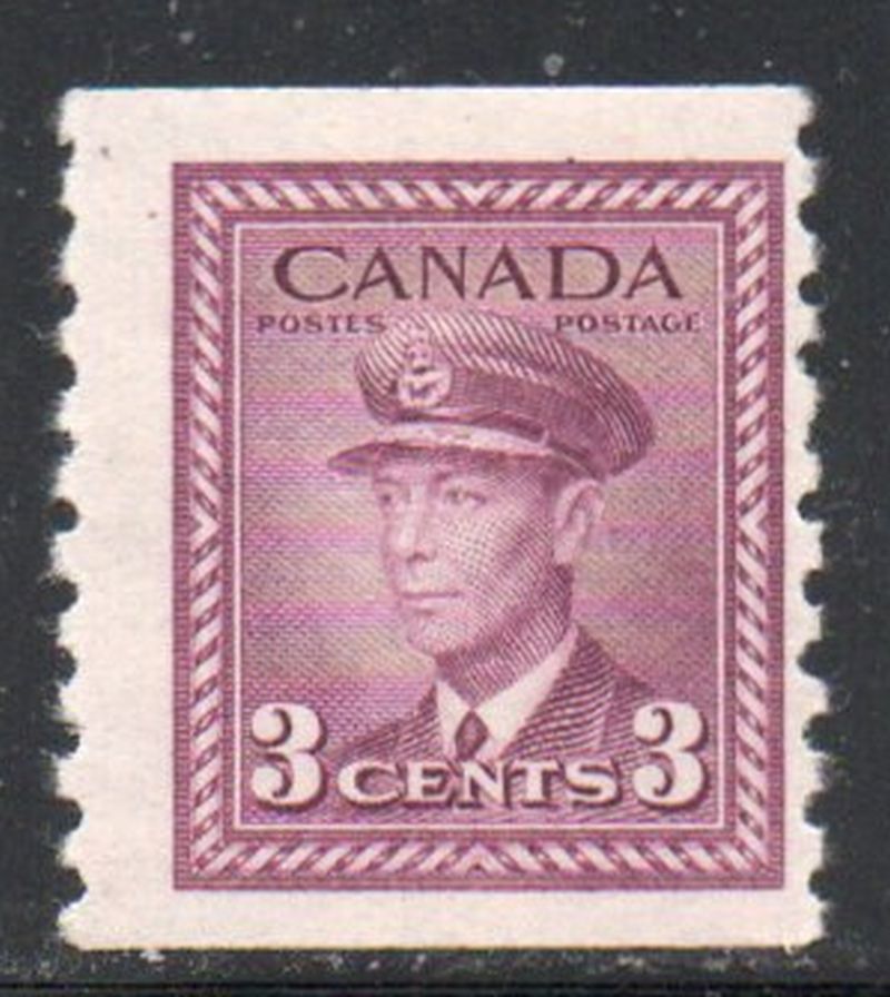 Canada Scott & Unitrade Specialized Catalogue number 280 1948 3 rose violet George VI coil stamp perforated 9 1/2 .