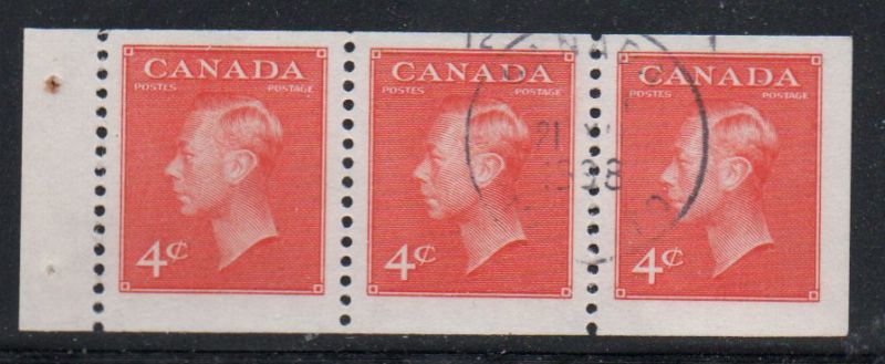 Canada Scott & Unitrade Catalogue number 306a 1951 4 cent orange vermilion George VI stamp booklet pane of 3