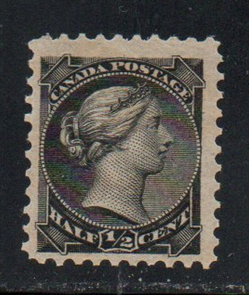 Canada Scott& Unitrade Catalogue number 34 1882 1/2 cent black small Queen Victoria stamp .Mint, fine original gum hinged .Member Canadian Stamp Dealers AssociationCanadian Customers - I pay the GST/HSt on your purchases from me .25-10-29.jpg
