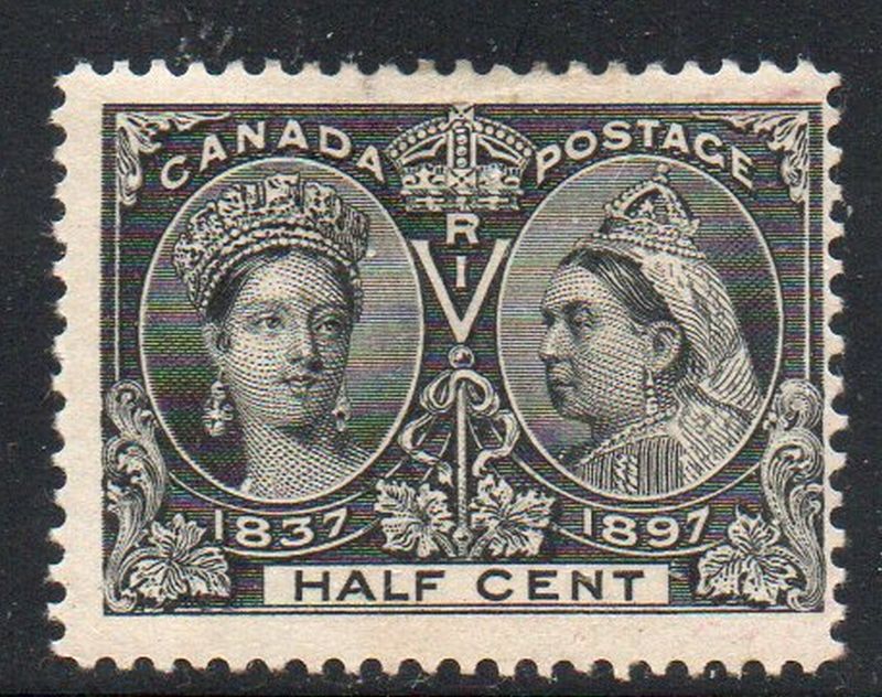 Canada Scott & Unitrade  Catalogue number 50 1897 1/2 cent black Victoria Jubilee stamp .Mint, very good to fine, original gum heavy hinge.Canadian Customers - No added GST/HST .US customers - There is no tariff on postage stamps that I send to you.26-1-43.jpg