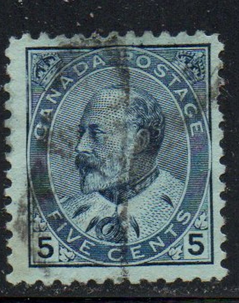 Canada Scott& Unitrade Catalogue number 91 1903 5 cent blue Edward VII stamp .Used, just fine .Member Canadian Stamp Dealers AssociationCanadian Customers - I pay the GST/HSt on your purchases from me .25-10-24.jpg