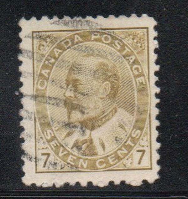 Canada Scott & Unitrade  Catalogue number 92 1903 7 cent olive bistre Edward VII stampUsed, fine.Canadian Customers - I pay the GST/HST for you19-1-86.jpg