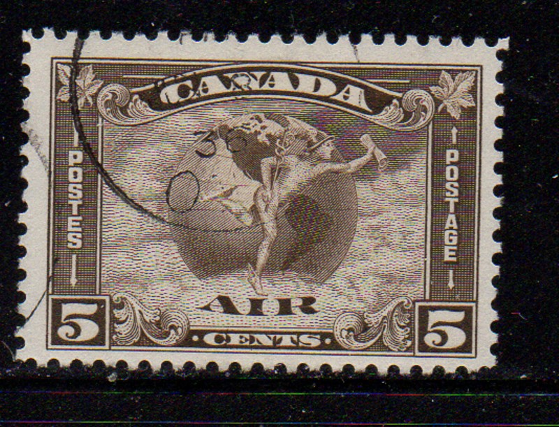 Canada Scott Unitrade Catalogue number C2 1930 5 cent Mercury Circling Globe Airmail stamp .