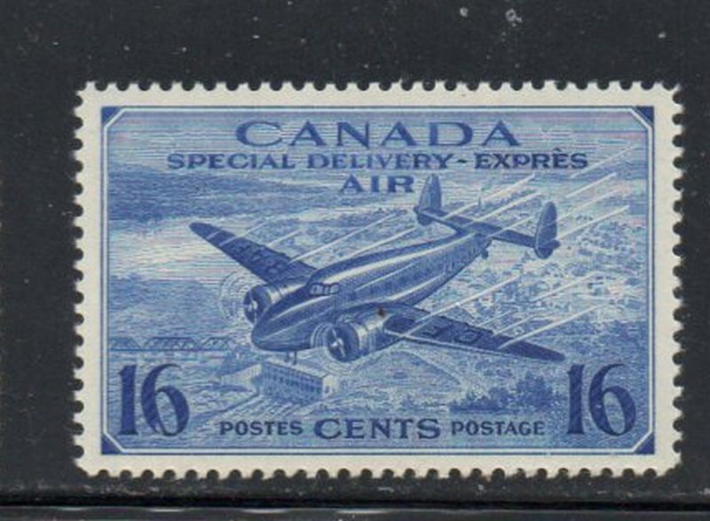 Canada Scott  & Unitrade Catalogue number CE1 1942 16 cent Airmail Special Delivery stamp .Mint, fine to very fine, original gum hinged .Canadian Customers - no added GST/HSTUS customers - No tariffs on stamps sent by meMember Canadian Stamp Dealers Association22-3-92.jpg