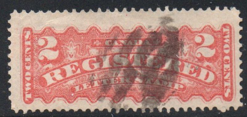 Canada Scott & Unitrade Catalogue number F2 1875 2 cent orange Registration stamp .Used, fine to very fine .Member Canadian Stamp Dealers Association .Canadian Customers - I pay the GST/HST on your purchases from me .25-6-56.jpg