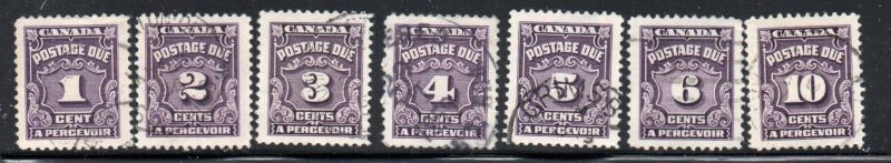 Canada Scott & Unitrade Catalogue number J15-J20, including J16B, postage due stamp .Used, fine to very fine .Member Canadian Stamp Dealers Association .Canadian Customers - I pay the GST/HST on your purchases from me .25-6-63.jpg