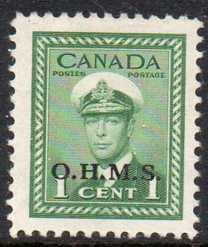 Canada Scott & Unitrade Catalogue number O1 1949 1 c George VI OHMS overprint Official stamp