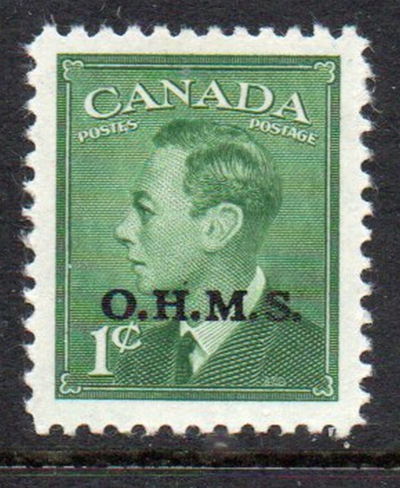 Canada Scott & Unitrade Catalogue number O12 1950 1 cent George VI OHMS overprint Official stamp Mint, fine to very fine original gum hinged  .Member Canadian Stamp Dealers AssociationCanadian Customers - No added GST/HST .US customers - There is no tariff on postage stamps that I send to you.26-1-70.jpg
