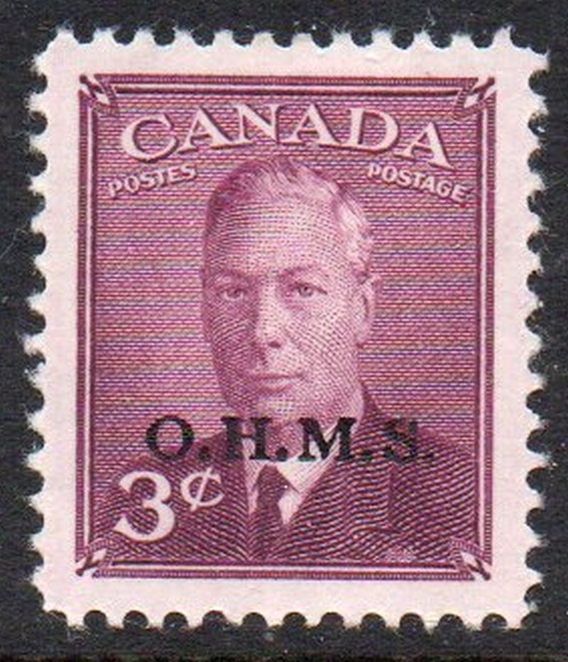 Canada Scott & Unitrade Catalogue number O14 1950 3 cent George VI OHMS overprint Official stamp Mint, fine to very fine original gum hinged  .Member Canadian Stamp Dealers AssociationCanadian Customers - No added GST/HST .US customers - There is no tariff on postage stamps that I send to you.26-1-72.jpg