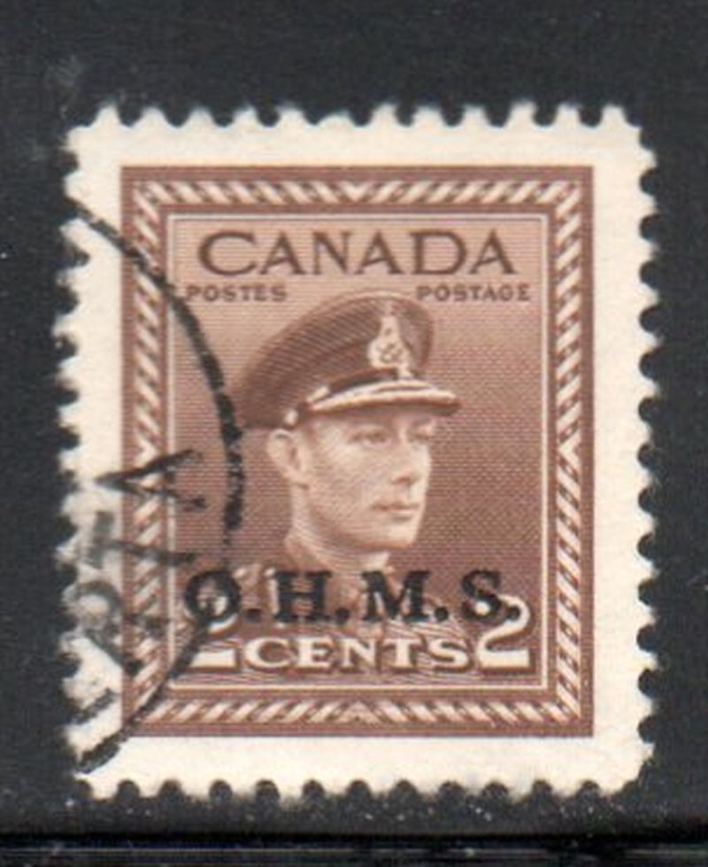 Canada Scott & Unitrade Catalogue number O2 1949 2 cent brown OHMS overprint for official used stamp .