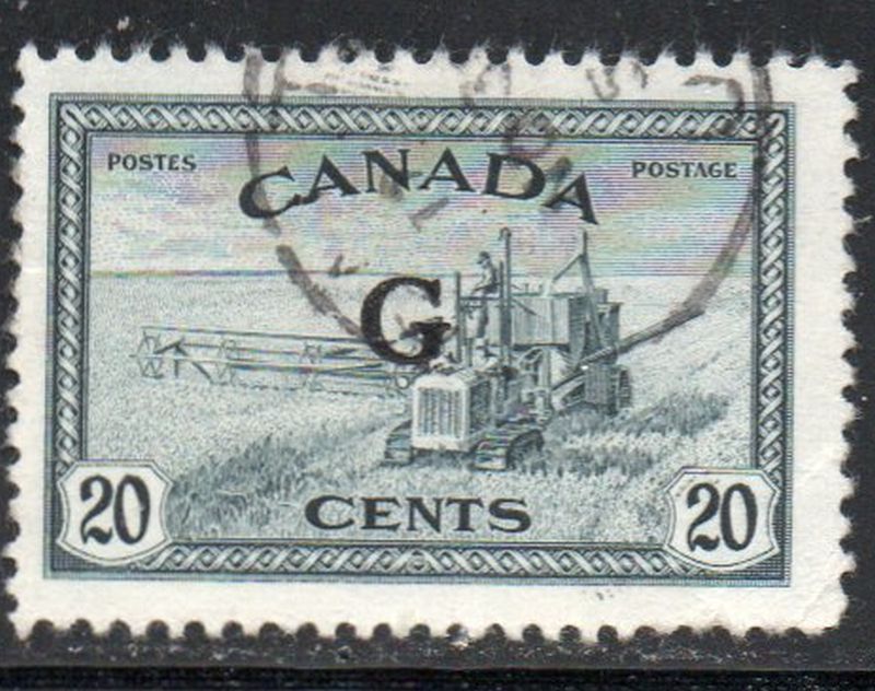 Canada Scott & Unitrade Catalogue number O23 1950 20 cent Combine stamp with G overprint for Official use .Used, fine to very fine .Member Canadian Stamp Dealers Association .Canadian Customers - I pay the GST/HST on your purchases from me .25-8-19.jpg