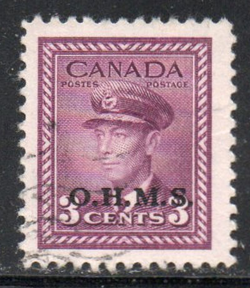 Canada Scott & Unitrade Catalogue number O3 1949 3 cent George VI overprinted OHMS fo Official use   stamp .Used, fine .Member Canadian Stamp Dealers Association .Canadian Customers - I pay the GST/HST on your purchases from me .25-8-15.jpg