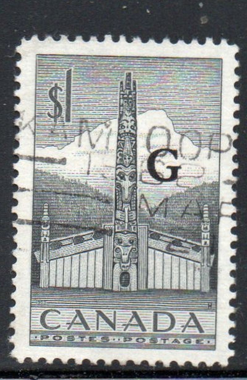 Canada Scott & Unitrade Catalogue number O32 1953 $1 Totem Pole stamp with G overprint for official use.
