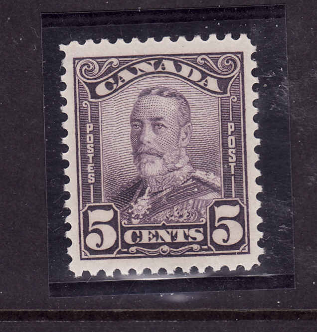 Canada-Sc#153-Unused 5c deep violet KGV Scroll -OG NH -1928-Member of the Canadian Stamp Dealers Association and have been serving the collector since 1975.Canadian buyers - I will cover your GST/HST costs .