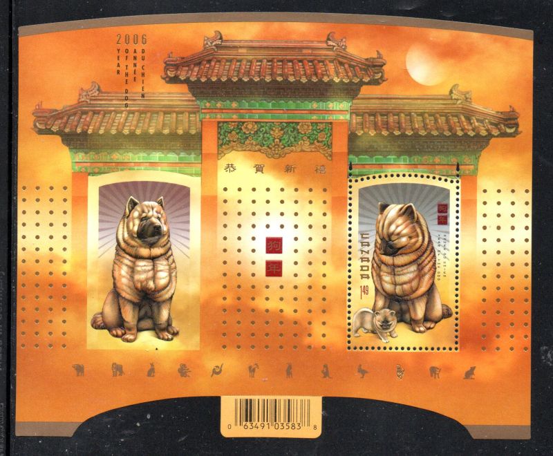 Canada Scott Catalogue number 2141 2006 Year of the Dog stamp souvenir sheet .Mint, fine to very fine, original gum never hinged.Member Canadian Stamp Dealers Association .