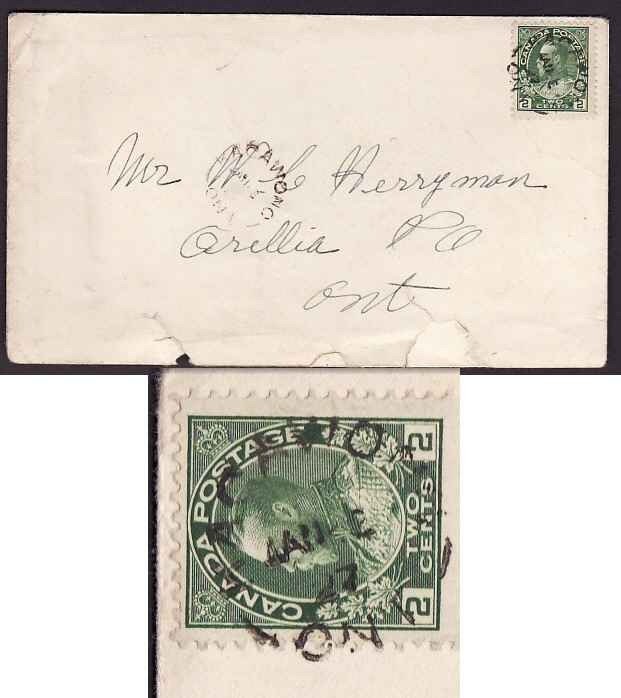 Scan #9297 - 2c Admiral - Manitoulin District-Kagawong,Ont single broken circle-Jan 2 1927