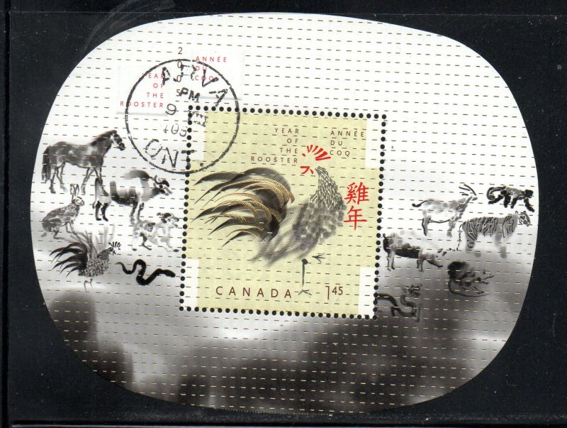 Canada Scott & Unitrade Specialized Catalogue number 2084 2005 Year of the Rooster stamp souvenir sheet .Used fine to very fine .Canadian Customers - I pay the GST/HST on your purchases from me