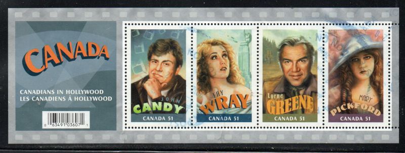 Canada Scott & Unitrade Specialized Catalogue number 2153 2005 Canadians in Hollywood stamp souvenir sheet .Used fine to very fine .Canadian Customers - I pay the GST/HST on your purchases from me