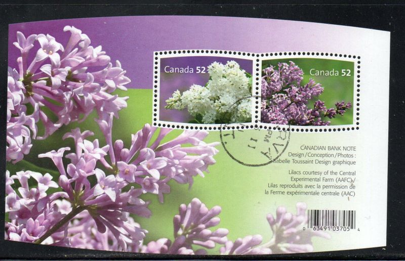 Canada Scott & Unitrade Specialized Catalogue number 2206 2005 Lilacs stamp souvenir sheet .Used fine to very fine .Canadian Customers - I pay the GST/HST on your purchases from me