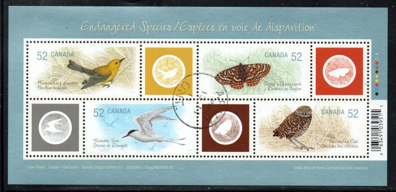 Canada Scott & Unitrade Specialized Catalogue number 2285 2008 Endangered Species stamp souvenir sheet..Used fine to very fine .Canadian Customers - I pay the GST/HST on your purchases from me
