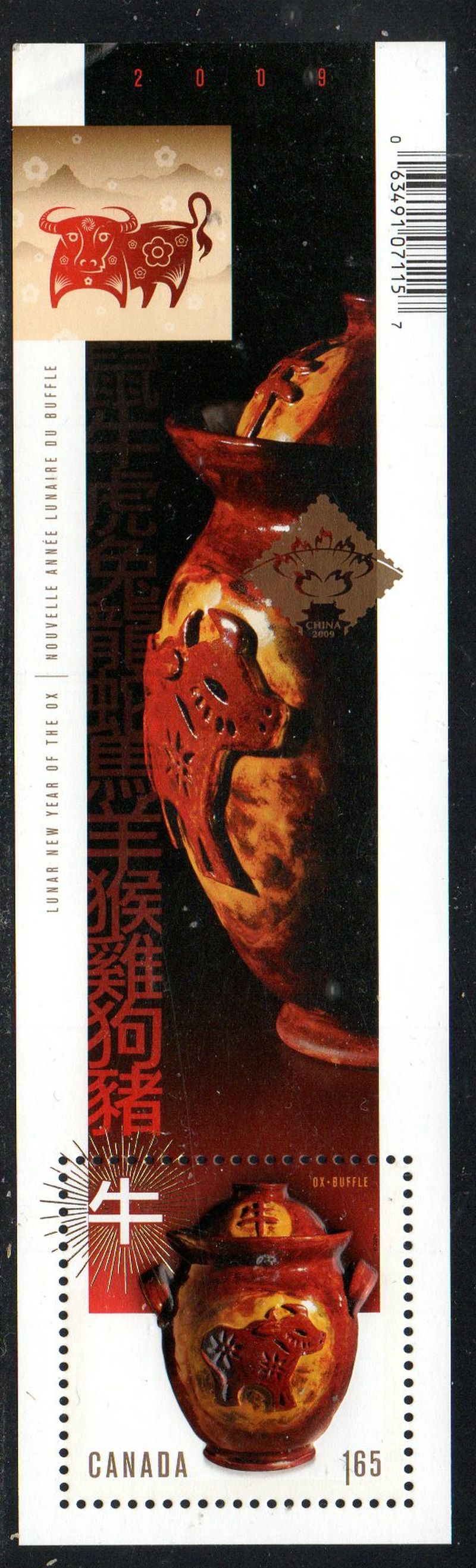 Canada Scott  & Unitrade Specialized Catalogue number 2297a 2009 Year of the Ox with overprint stamp souvenir sheet .Mint, fine to very fine, original gum never hinged  .Canadian Customers - I pay the GST/HST on your purchases from meMember Canadian Stamp Dealers Association