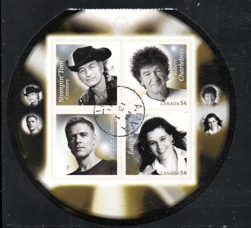 Canada Scott 2334d & Unitrade Specialized Catalogue number 2334di 2009 Recording Artists stamp booklet pane, Stompin Tom Connors in upper left position .Used fine to very fine .Canadian Customers - I pay the GST/HST on your purchases from me