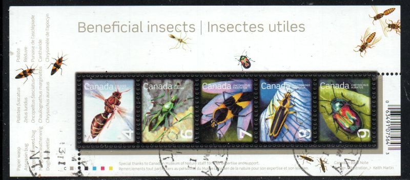 Canada Scott & Unitrade Specialized Catalogue number 2410 2010 Beneficial Insects stamp souvenir sheet .Used fine to very fine .Canadian Customers - I pay the GST/HST on your purchases from me