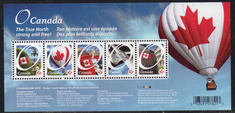 Canada Scott & Unitrade Specialized Catalogue number 2418 2011 O Canada stamp souvenir sheet .Mint, fine to very fine, original gum never hinged .Canadian Customers - I pay the GST/HST on your purchases from me