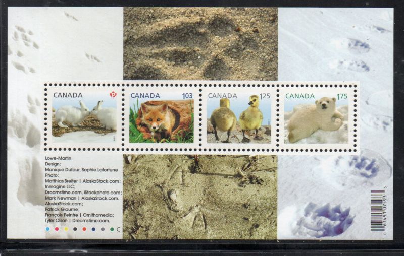 Canada Scott & Unitrade Specialized Catalogue number 2424 2011 Baby Wildlife stamp souvenir sheet .Mint, fine to very fine, original gum never hinged .Canadian Customers - I pay the GST/HST on your purchases from me