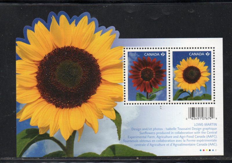 Canada Scott & Unitrade Specialized Catalogue number 2440 2011 Sunflowers stamp souvenir sheet .Mint fine to very fine, original gum never hinged .Canadian Customers - I pay the GST/HST on your purchases from me