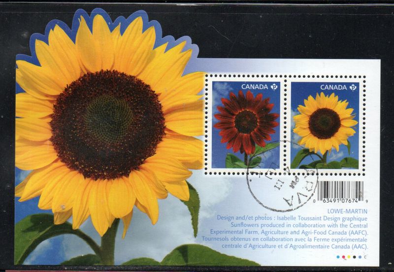 Canada Scott & Unitrade Specialized Catalogue number 2440 2011 Sunflowers stamp souvenir sheet .Used fine to very fine .Canadian Customers - I pay the GST/HST on your purchases from me
