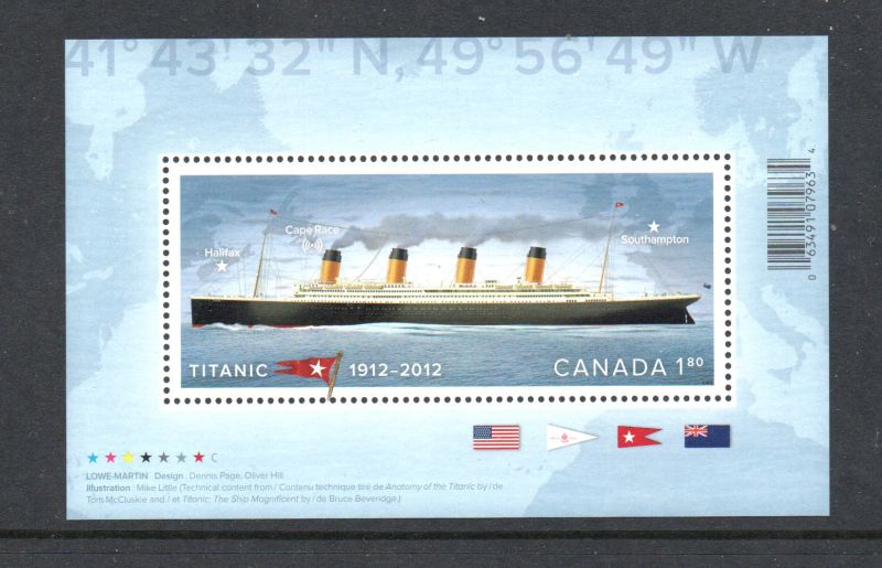Canada Scott  & Unitrade Specialized Catalogue number 2535 2012 Titanic Anniversary stamp souvenir sheet .Mint, fine to very fine, original gum never hinged  .Member Canadian Stamp Dealers AssociationCanadian Customers - No added GST/HST .US customers - There is no tariff on postage stamps that I send to you.