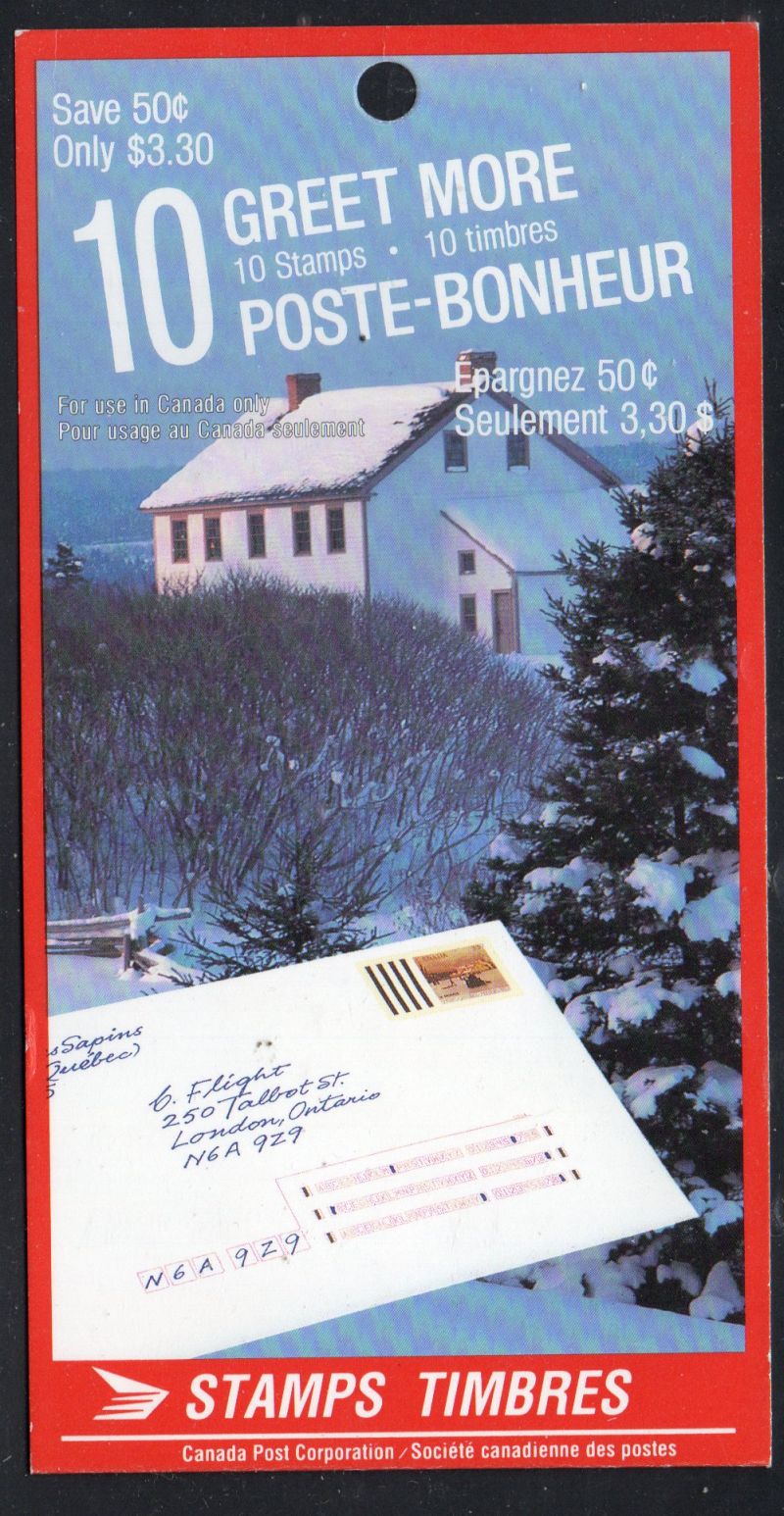 Canada Unitrade Catalogue number BK106 1989 Greet More Christmas stamp ( Sc 1259a) stamp booklet of 10 .