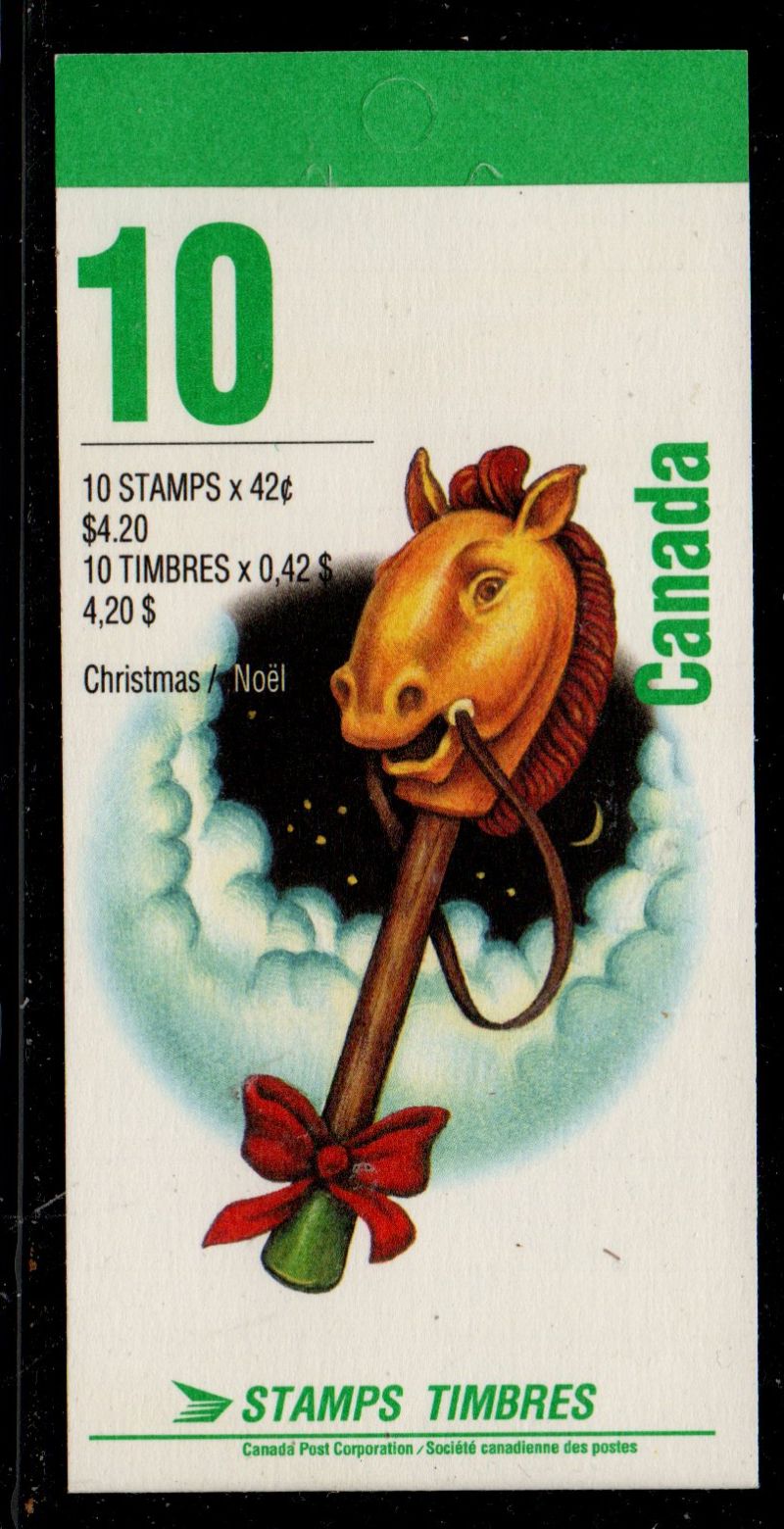 Canada Unitrade Specialized Catalogue number Bk150b (1452b) 1992 42 cent Christmas stamp booklet of 10 stamps.