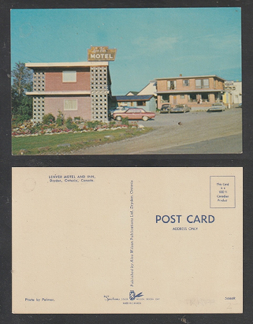 colour postcard - divided back "Lenver Motel and Inn, Dryden, Ontario, Canada"Publisher:: Alex Wilson Publications Ltd.. Dryden, OntarioPostcard is in Very Good / Excellent condition, The postcard has never been mailedThis is a standard size postcard