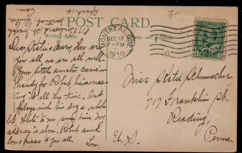 Colour Postcard Park Drive, Montreal used 1910 to Reading, PennsylvaniaMember Canadian Stamp Dealers Association .Canadian Customers - I pay the GST/HST on your purchases from me .sc25-1-1.jpg