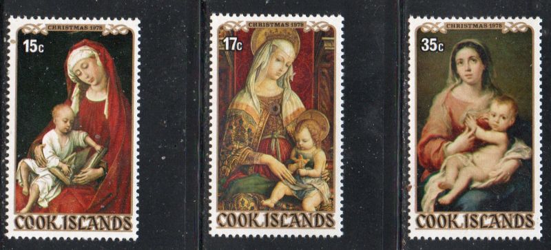 Cook Islands Scott Catalogue number 503-505 1978 Christmas stamp set .Mint, fine to very fine, original gum never hinged .Member Canadian Stamp Dealers Association .Canadian Customers - I pay the GST/HST on your purchases from me .