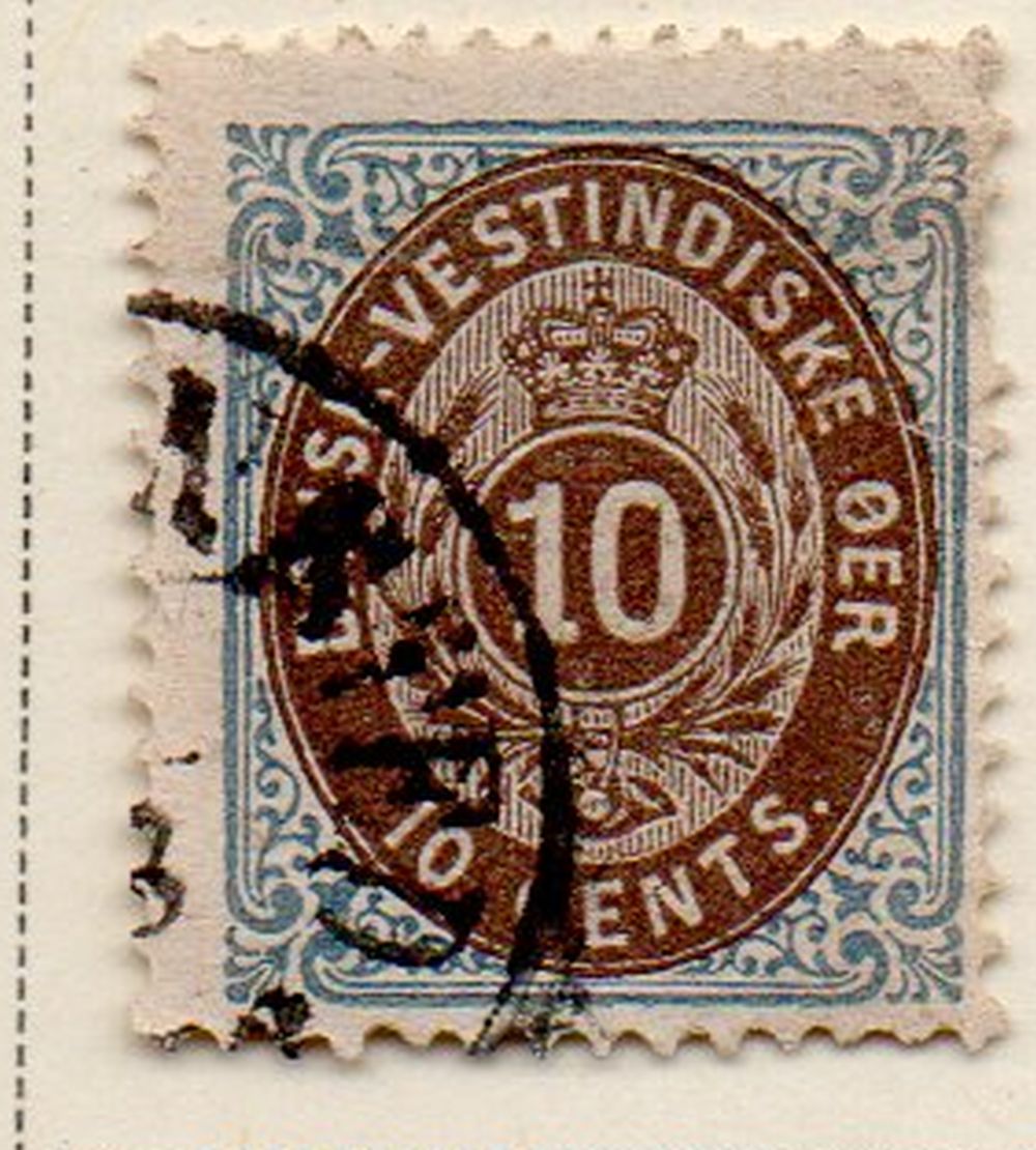Danish West Indies Scott Catalogue number 10 1876 blue & brown stamp.Used, very good to fine.Canadian Customers - I pay the GST/HST on your purchases from me .